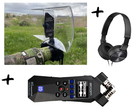 PAQUETE - Micrófono parabólico estéreo profesional HI-SOUND COMPACT + Grabadora ZOOM H1 Essential + Auriculares SONY: