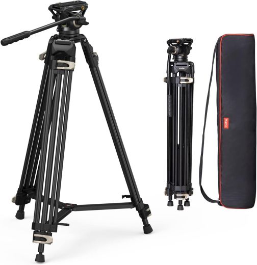La tête fluide dispose d’un filetage 1/4"-20 permettant d’ajouter des accessoires tels qu’un bras magique, un moniteur ou une lampe vidéo. La plaque à dégagement rapide intègre une clé de montage, et l’ensemble est fourni avec un sac de transport pratique pour faciliter le rangement et le déplacement.